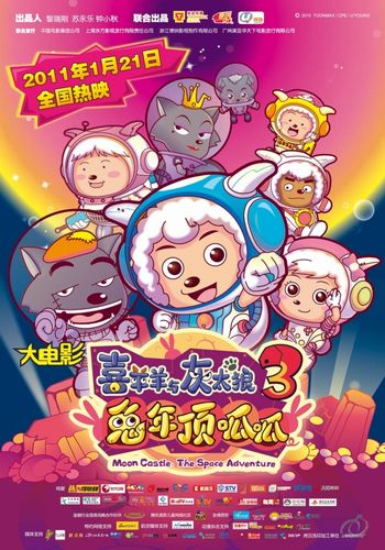 在第三部大电影中,喜羊羊与灰太狼告别青青草原,坐上糖果飞船远赴神秘太空,在五彩斑斓的甜蜜世界展开全新之旅。美轮美奂的设计为观众呈现了一个梦境般的奇幻世界,果酱布丁沼泽、彩色糖果大瀑布、棒棒糖丛林等独具匠心的设计唤醒了每个人的童年记忆。 当然,纵使场景再华美也只能甘当“绿叶”,一年一度的“羊狼联手”才是当仁不让的“红花”。机智过人的喜羊羊变身月球救世主,他随身携带的超能铃铛竟隐藏着一段封藏已久的身世之谜,“喜爸”、“喜妈”的现身也让他得以与父母一家团圆;灰太狼与红太狼的甜蜜恋情首度曝光,“新好男人”竟曾遇上“吃蛋炒饭送老婆”的人间美事;人气组合小灰灰和懒羊羊月球相遇,“难兄难弟”再次联手出击,让人啼笑皆非。此外,号称面目俊美、脸色发青的苦瓜大王接过反派接力棒,野心勃勃,誓要苦化月球,引发了一场“甜”与“苦”的PK战。