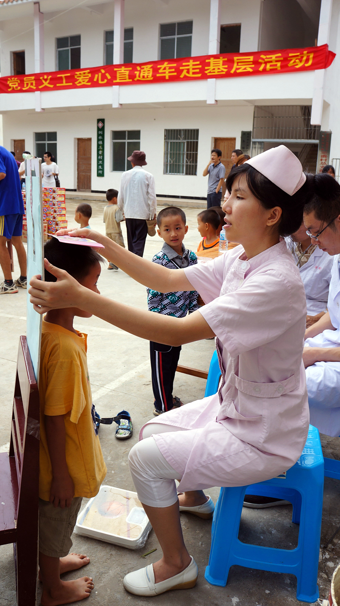 当天,市妇幼保健针对三贵村留守老人腰腿疼的问题,特设中医、外科、内科等诊治点,现场为村民进行针灸、穴位治疗。同时,市妇幼保健院还专门安排保健医生,给三贵村幼儿园的小朋友们进行体检,对他们的发育情况进行评估。市妇幼保健部医生黄燕表示,进行体检的儿童大部分身高、体重均不达标,属于典型的营养不良,希望幼儿园教师及家长能设法加强饮食营养。