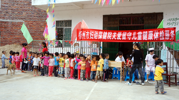 三贵启蒙幼儿园的小朋友在等待体检。黄祎婧/摄
