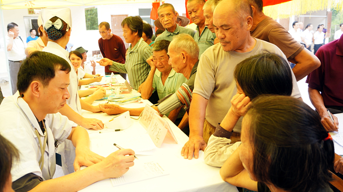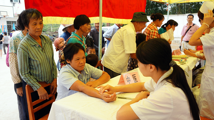 市妇幼保健院的医护人员为村民把脉。黄祎婧/摄