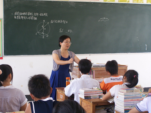 陆英慧在给学生讲数学课。(梧州六中供图)