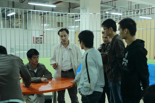 陆科达在梧州学院大学生发展中心创新区与学生交流。