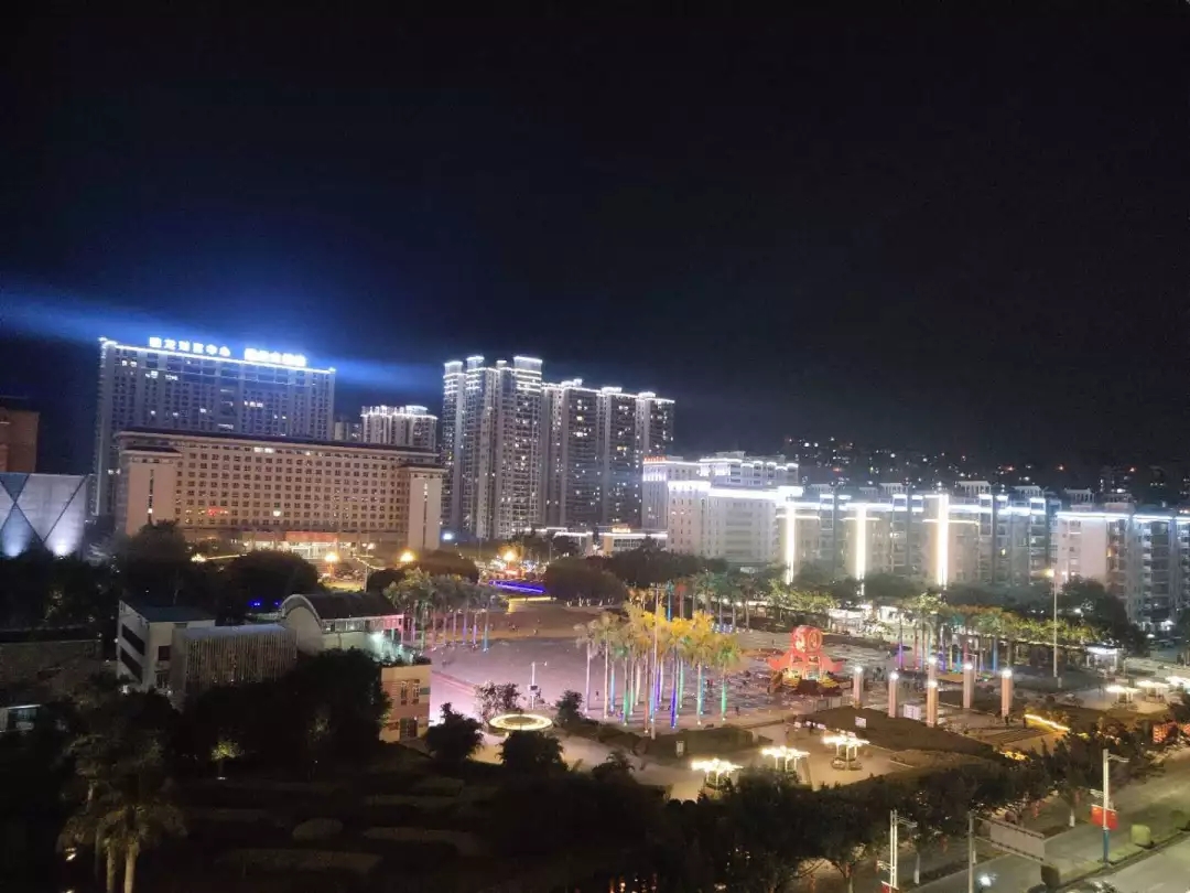 梧州南站站前广场的灯光夜景。