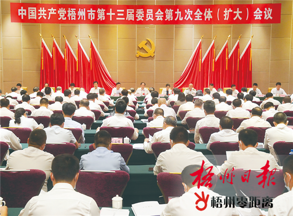 中国共产党梧州市第十三届委员会第九次全体(扩大)会议公报 (2020年7月31日中国共产党梧州市第十三届委员会第九次全体(扩大)会议通过) 中国共产党梧州市第十三届委员会第九次全体(扩大)会议,于2020年7月31日召开。 出席这次会议的有,市委委员52人,候补委员5人。不是市委委员、候补委员的市人大常委会、政府、政协领导班子成员及秘书长,县(市、区)党政主要负责同志,市委、政府副秘书长,有关单位主要负责同志,市纪委常委、监委委员,各乡镇(街道)党委(党工委)书记,党的十九大在梧代表列席会议。